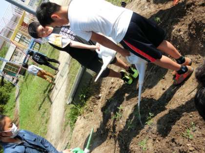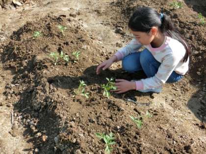 畑を起こして,肥料をまき,今日はトマトの苗を植えました。