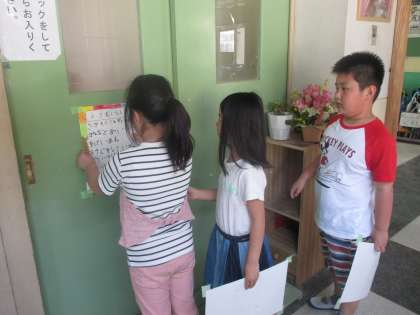 教室を紹介するカードが完成し,掲示しに行きました。