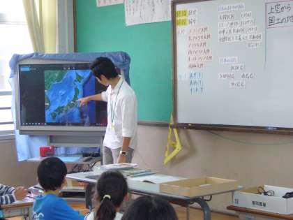 空から見た写真をヒントに日本の国土の様子を調べました。高い山々,海に囲まれていることなど。これからの学習にどのようにつながっていくのかが,たのしみですね。