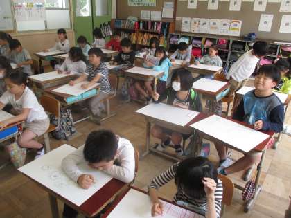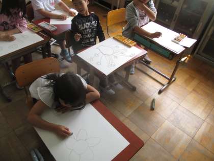 まだ下書きの段階ですが,子どもたちの発想は面白く豊かで,いろいろな花が見れました!