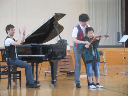 普段なかなか触れることのないバイオリンの演奏も体験させていただき,子どもたちはとても喜んでいました。