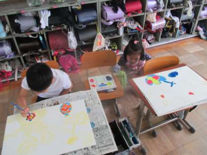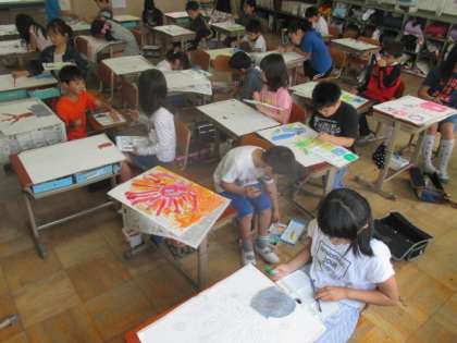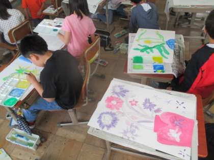 今日の図工の時間では,先週下書きをしたまぼろしの花に色をつけていきました!