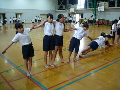 組体操の練習をしています。