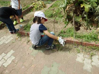 1年生は中庭や運動場の草抜きをがんばりました!