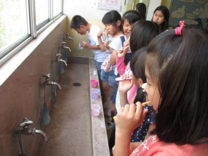 みんな給食後に一生懸命歯を磨いています!