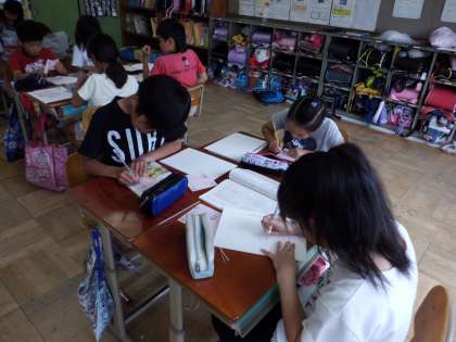 漢字や部活など,自分たちが頑張っていることとつなげながら考えをまとめていました。