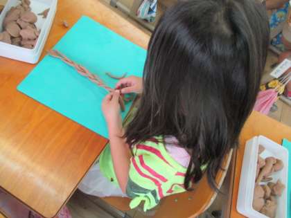 ねんどを細長くして,ひもにして,いろいろな形を作ってみました♪