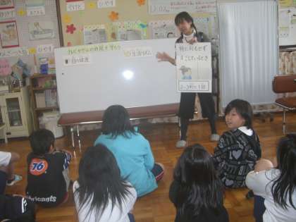 ほけんだよりを使って教室で学習し,身体計測前に保健室でまばたきの体験をしています。ゲームをしているときの「12秒に1回のまばたき」を体験してみて,「目が乾く!」とか「目が痛い!」「がまんできない!」など目にとって厳しい様子であることを感じました。