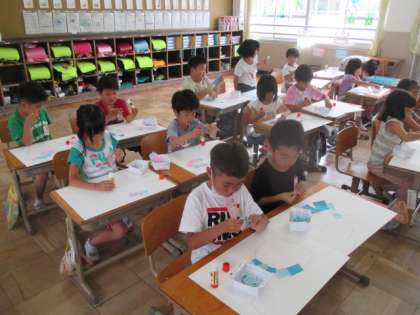 折り紙をちぎって貼り合せ,ちぎり絵を作りました。