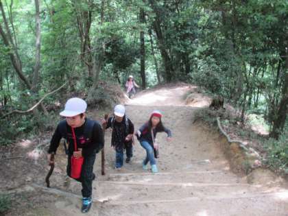 子どもたちの中には,街中の段階で疲れていそうな児童もいましたが,山道になった途端元気に戻る子もいました。