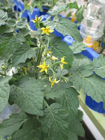 生活科で育てているミニトマト。かわいい黄色の花がさき,ついに,実がなりました。