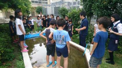 裸足で入る田んぼの感触に,みんな驚いていました。