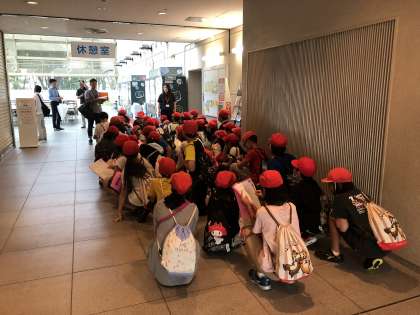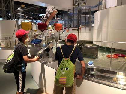 外は雨ですが,子どもたちは,科学館の中で展示物を楽しく見学しています。