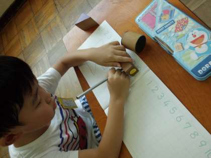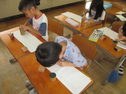 算数「いろいろなかたち」の学習で,かたちうつしをしました。