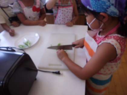 みんなで育ててきたピーマンがたくさん実をつけたので,野菜パーティーをしました。