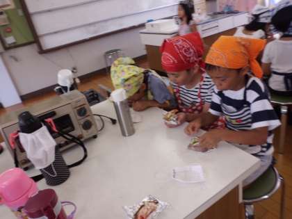 「ぎょうざピザ」を作りましたが,慣れない包丁に苦戦しながらも上手に作ることができました。