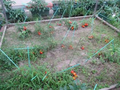 リリコトマトの花壇を見てみると,赤く色づいた実がたくさん増えていました!