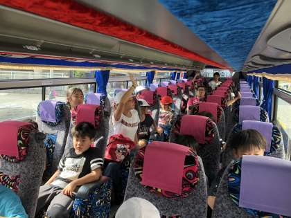バスに乗り込み,出発です。