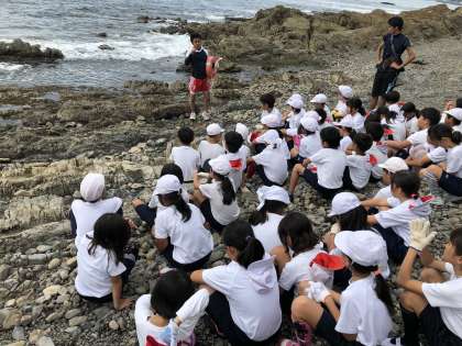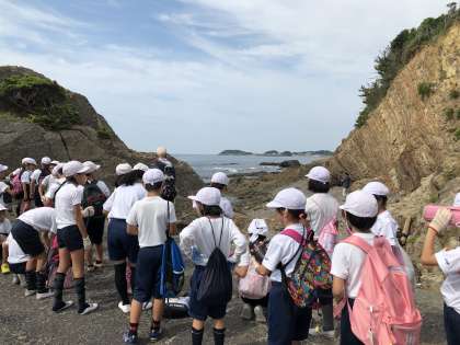 3枚目の写真,後ろの岩に見られる見事な地層をご覧ください。
