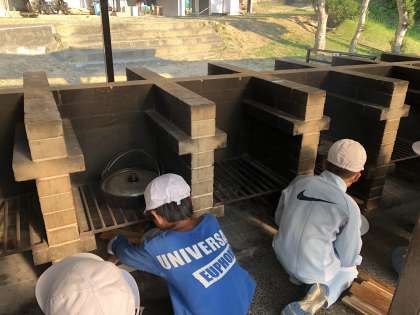 野外炊事です。