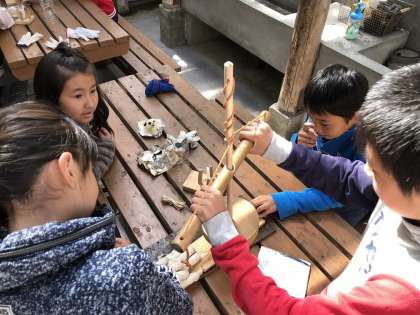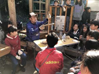 火おこしをしています。