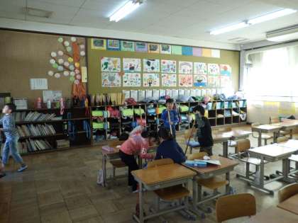 今日は,来年入学してくる子どもたちの健康診断でした。1年生の教室も会場として使われるということで,念入りに掃除をするみんなでした。あれからもう一年がたつのですね…。ずいぶん「お兄さん・お姉さん」になりました!