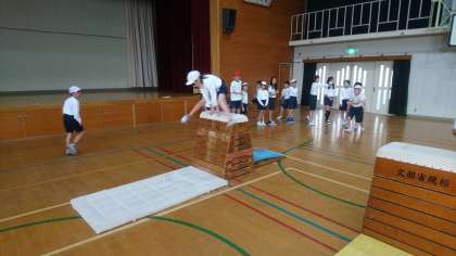 「とび箱」の学習がスタートしました。自分の目標に向かって頑張っています。