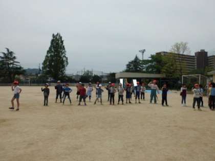 今日は運動場で練習をしました。