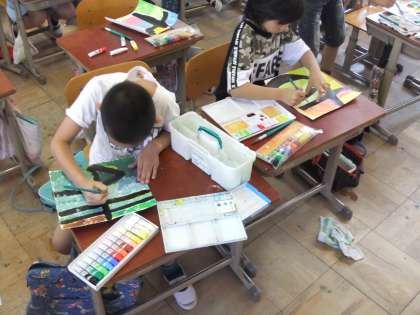 子どもたちは、筆の使い方を工夫しながら楽しく学習に取り組んでいました。