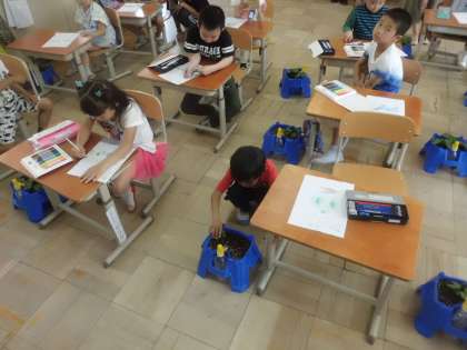 気づいたこと,発見したことを「みつけたよカード」に一生懸命書いてましたね。