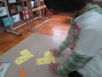 図工で6月の飾りを作っています。6月といえば,何やろう・・・?と考えながら作りました。出来上がったら,掲示板に飾ります。