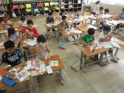 今日の図工の時間は,紙に絵を描いてから,折って立たせるという学習をしました!