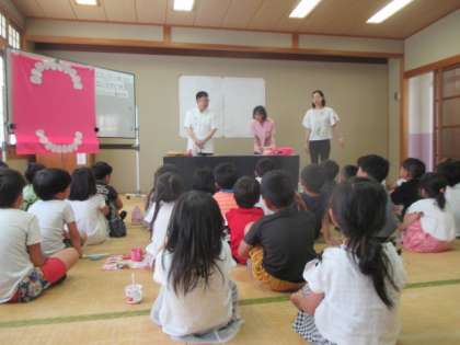 今日の歯磨き指導で,虫歯のことや,歯ブラシのしかたについて教わりました。