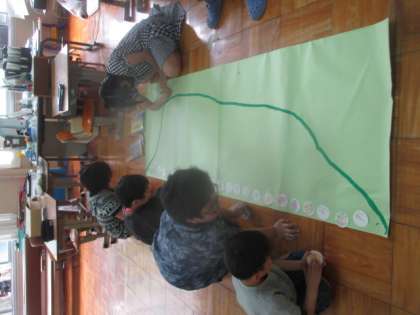 「すごろく」第二弾です。みんなで相談し,「山のぼり」をテーマに作っています。作るのも2回目となると,どんどんアイディアが出てきました。