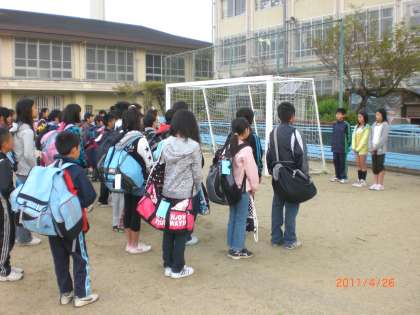 学校で出発式を行い44名元気に出発しました。