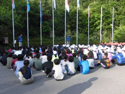 山の家 二日目 合同朝の会