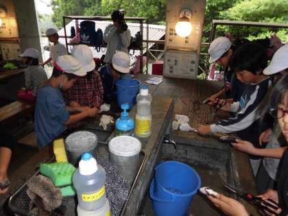 ついさっきまで生きていたイワナをさばいていよいよ命をいただきます。
