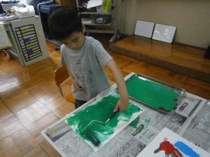 今日は,絵の具を使って「たなばた飾り」を作りました。画用紙にローラーで色をぬった後,野菜スタンプで模様をつけました。きれいに仕上がりました。作ったものは,織姫と彦星の着物になる予定です。
