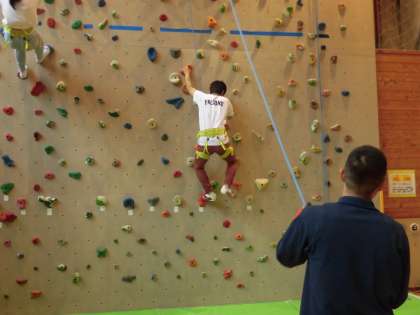 クライミングの最後の挑戦者は校長先生です。