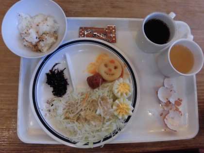 見に行ってみると,朝食のメニューの一つに出ていたゆで卵を,校長先生が調理器具を使わないできれいに飾っておられました。