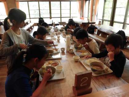 山の家での最後のごはんは食堂でいただきました。
