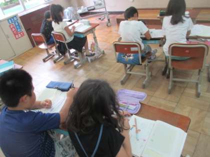 国語の「気になる記号」の単元で,自分たちの身の回りの記号に目を向け,記号の意味や伝わるための工夫を調べています。その調べたことを,報告する文章に書いています。自分の分かったことと考えたことを区別して書き,報告する文章を上手に書くことができていました。