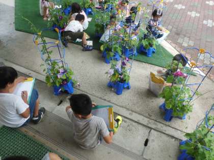 多くの子のあさがおから芽が出て,朝に見つけた子どもたちはすごく喜んでいました!