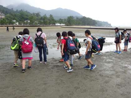 宮島に着いてからも雨に降られることなく,予定通り干潮の時間に大鳥居に近づくことができました。