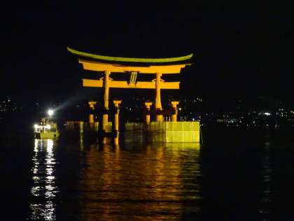 水面の反射が,ライトアップの美しさを際立たせていました。