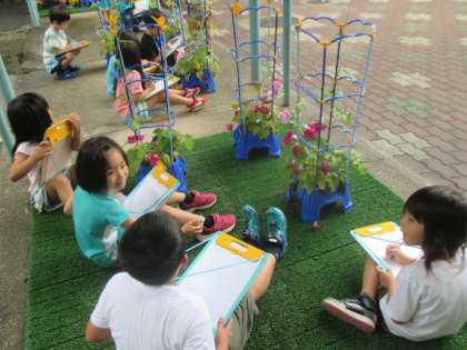 紫やうすいピンク,色とりどりの花をよくみて観察をしました。