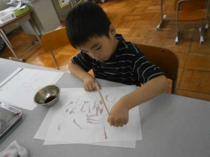 色水を使って,紙を染めたり,絵を描いたりしました。