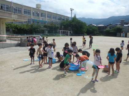 水をかけあったり,大きなシャボン玉を作ったり,夏ならではの思い出が学校でもできたと思います。