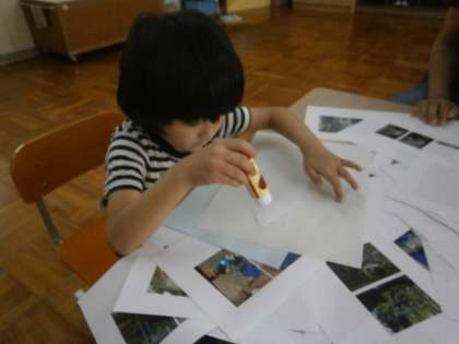 写真を見て,種を植えたこと,芽が出たこと,花が咲いたこと,色水遊びをしたことなど,思い出しながら作りました。