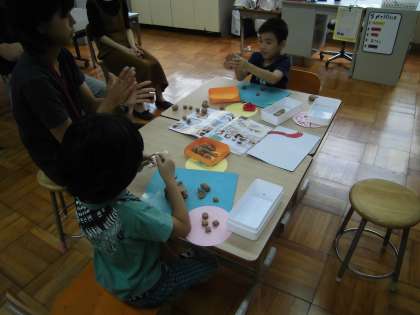 今日は,好きな食べ物を粘土でつくり,4組でごちそうパーティーをしました。